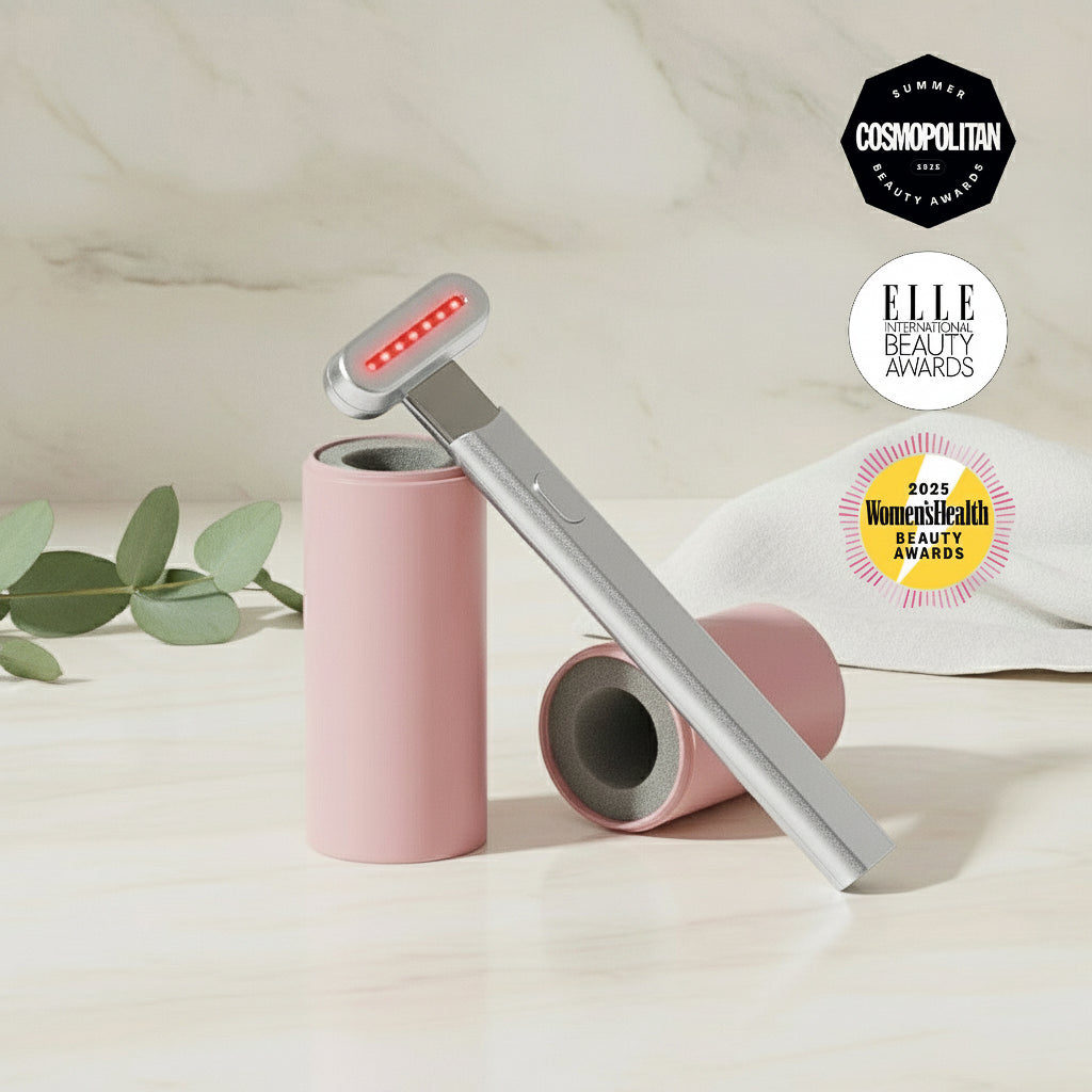 Our 4-in-1 Radiant Renewal Wand combines red light therapy, soothing warmth, galvanic hydration, and vibration massage into one non-invasive device. The 180° rotating head and built-in timer guide you through every facial zone for a spa-quality treatment at home. Includes USB charging cable.